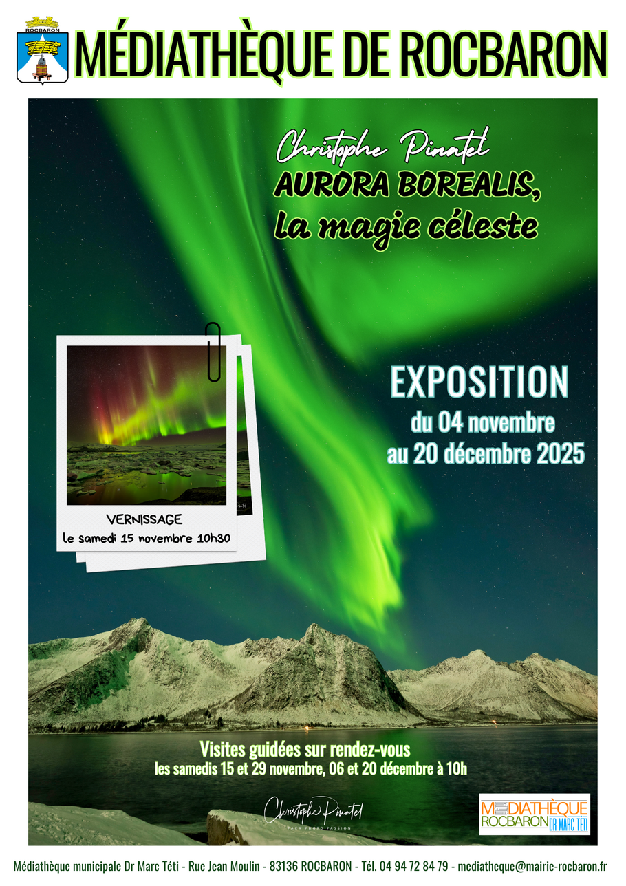 La Médiathèque de Rocbaron vous invite à découvrir cette magnifique exposition consacrée aux aurores boréales, un véritable voyage visuel au cœur des lumières du Nord.
